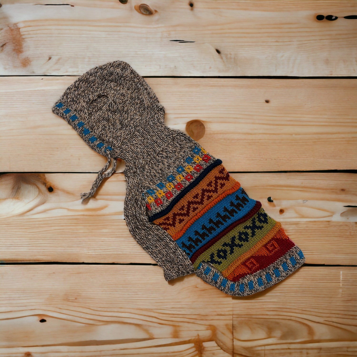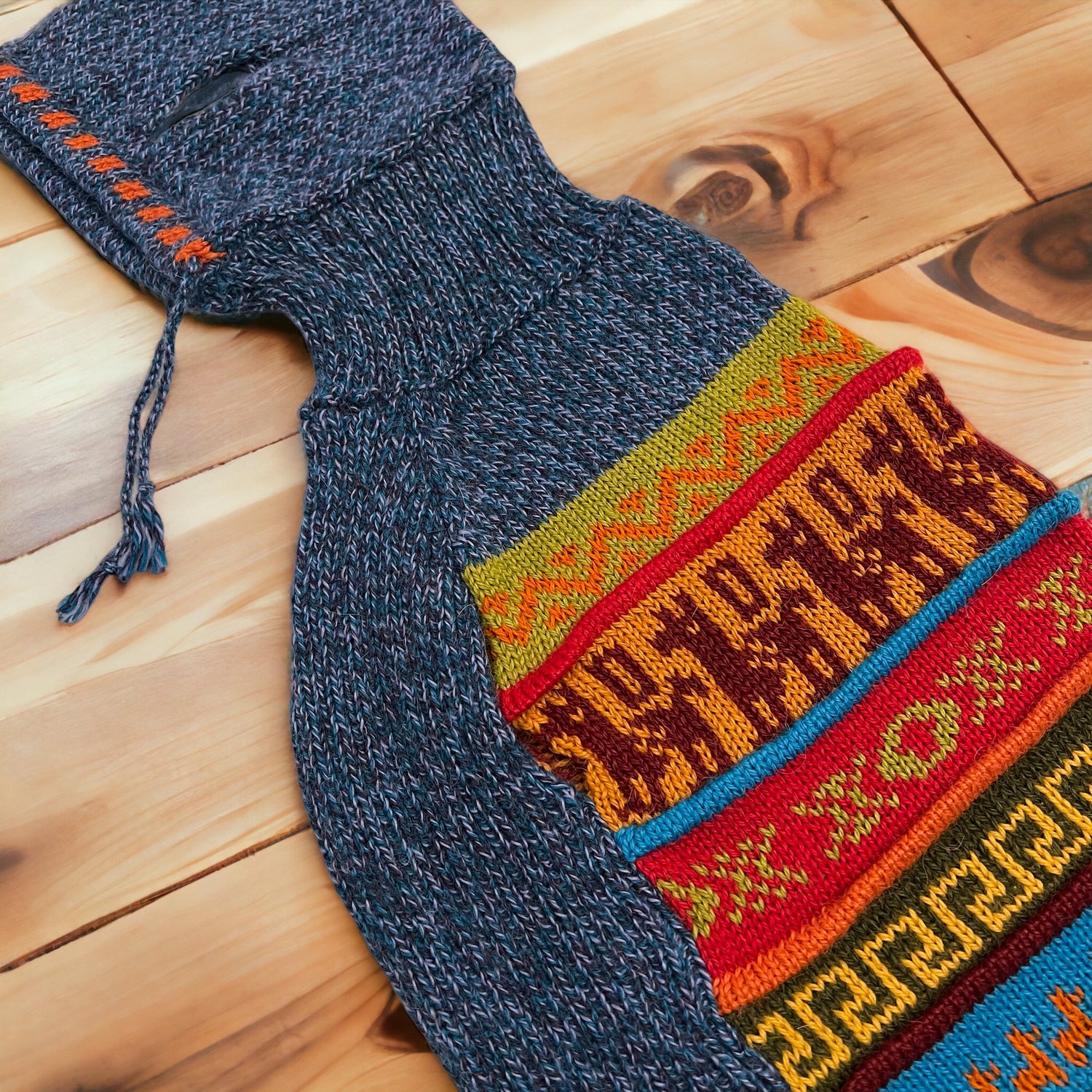 We call this doggie sweater the "Nazca Hoodie", inspired by the Inca ruins in Nazca Peru. Very fascinating and definitely worth looking up but the patterns, designs, and colors are so fun!