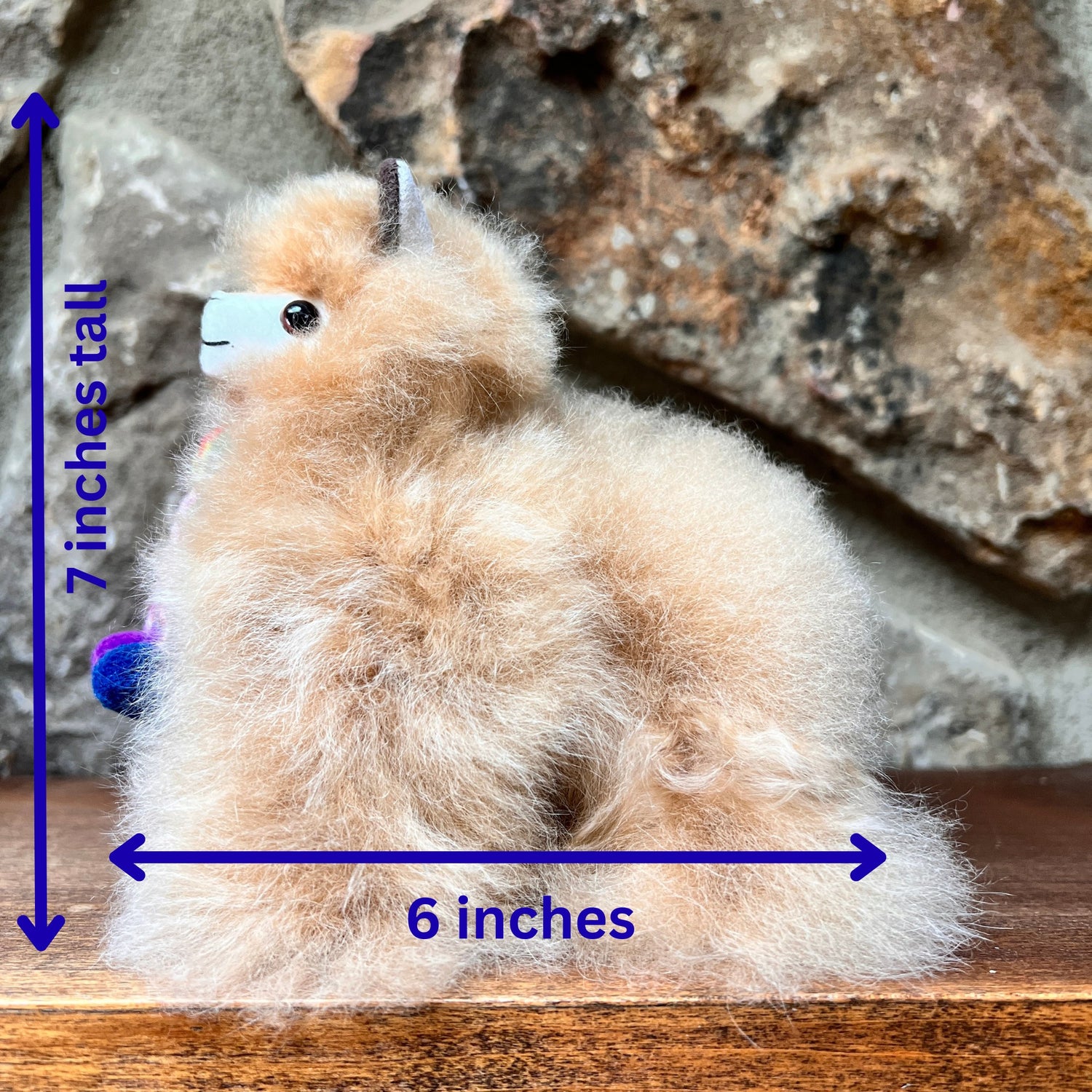 Crafted with care and precision, each Alpaca stands approximately 7 inches tall, making them the ideal cuddle companion for both children and adults alike. But what truly sets our alpacas apart is the unparalleled softness of the baby Alpaca fur sourced from the finest quality materials.