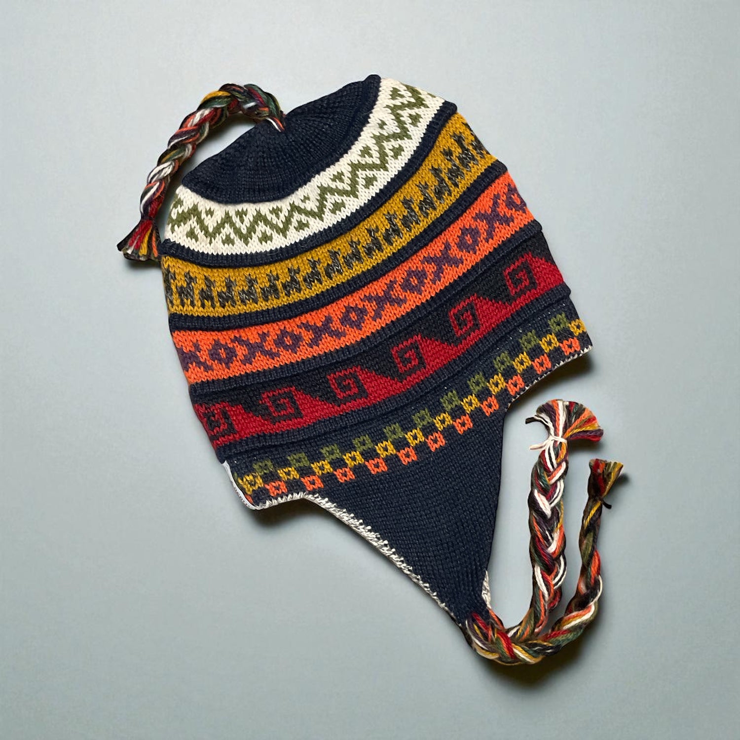 The Chullo hat is our version of the most typical hat in the Andes region of Peru. The hat of choice in the cold, high altitudes of the mountains because of its amazing protection from the wind and superior design protecting your neck and ears from the elements.
