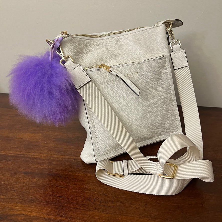 Introducing our luxurious handmade baby Alpaca fur zipper charms, crafted from the softest fur you can get. These **Luxury Alpaca Pom Poms** not only add a touch of elegance to any purse, backpack, or keychain but also offer a soothing, therapeutic experience. Petting the incredibly soft fur helps relieve stress and anxiety, making these charms a favorite among nurses and therapists for comforting individuals with Autism or sensory sensitivities. To keep them plush and fresh, simply apply baby powder and brush. Elevate your style and well-being with the elegance and comfort of **Luxury Alpaca Pom Poms**.