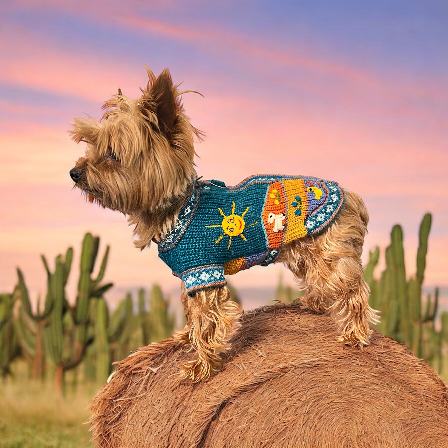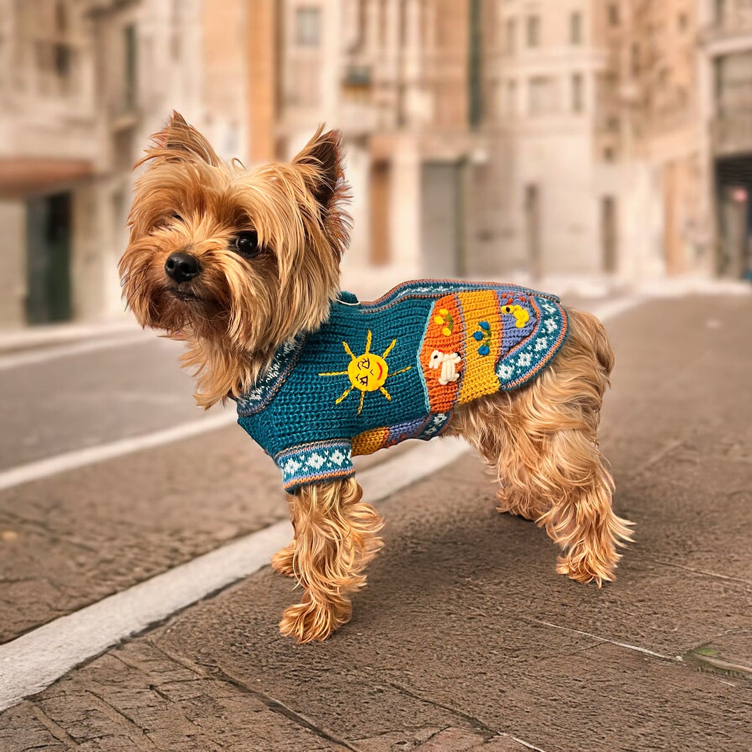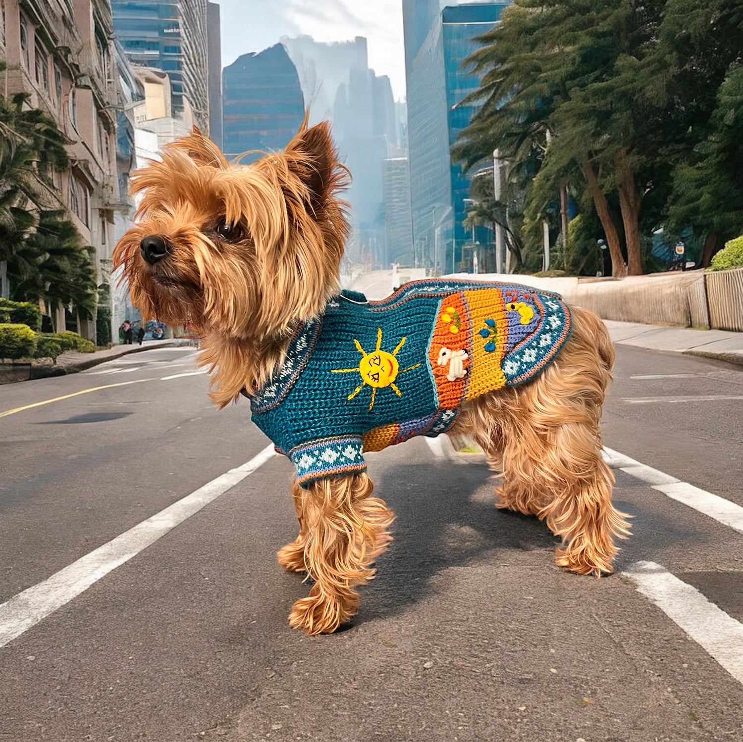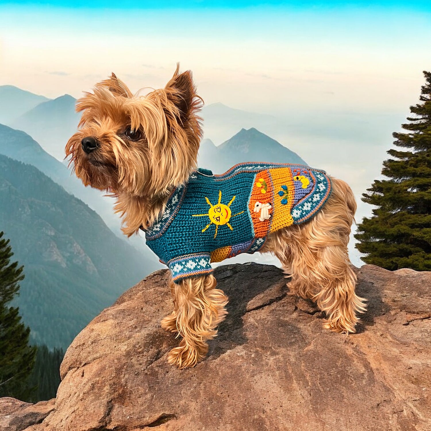 Doggies get cold too, especially the smaller breeds! Our Yorkie, Luna, adores her sweater and looks adorable in it. Each Peruvian Accent sweater is unique, with a machine-made base and hand-applied appliques, ensuring that every piece is one of a kind.