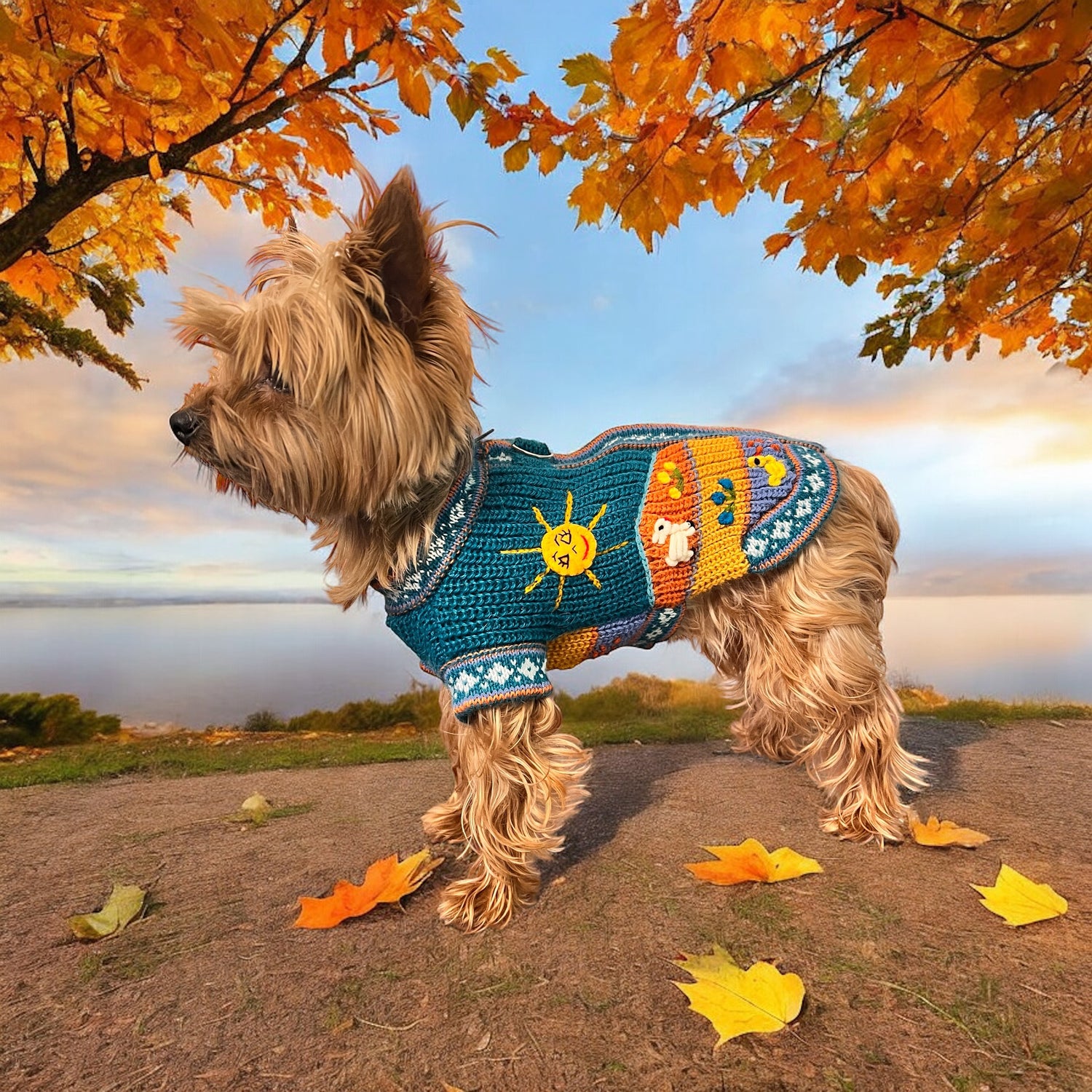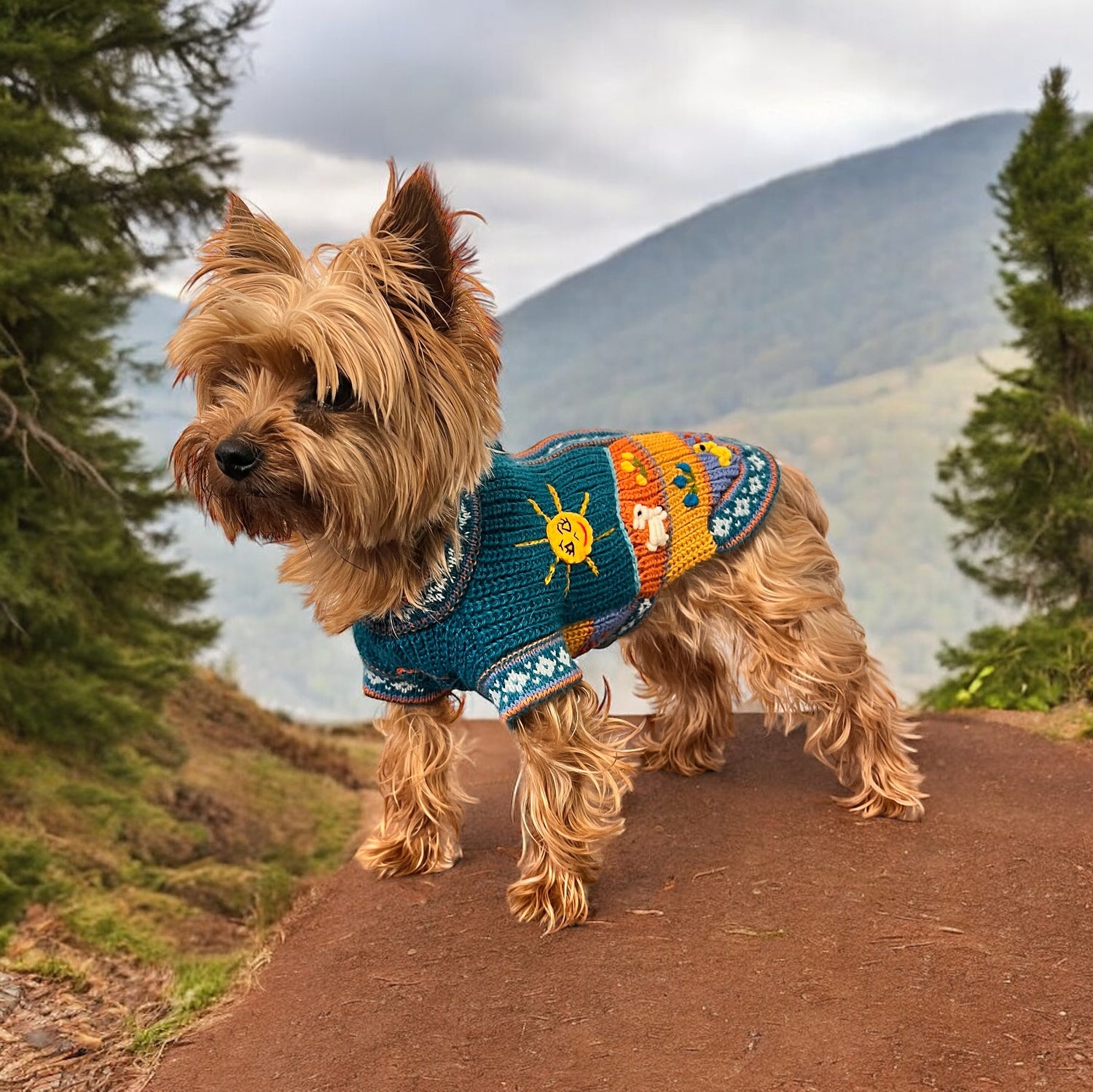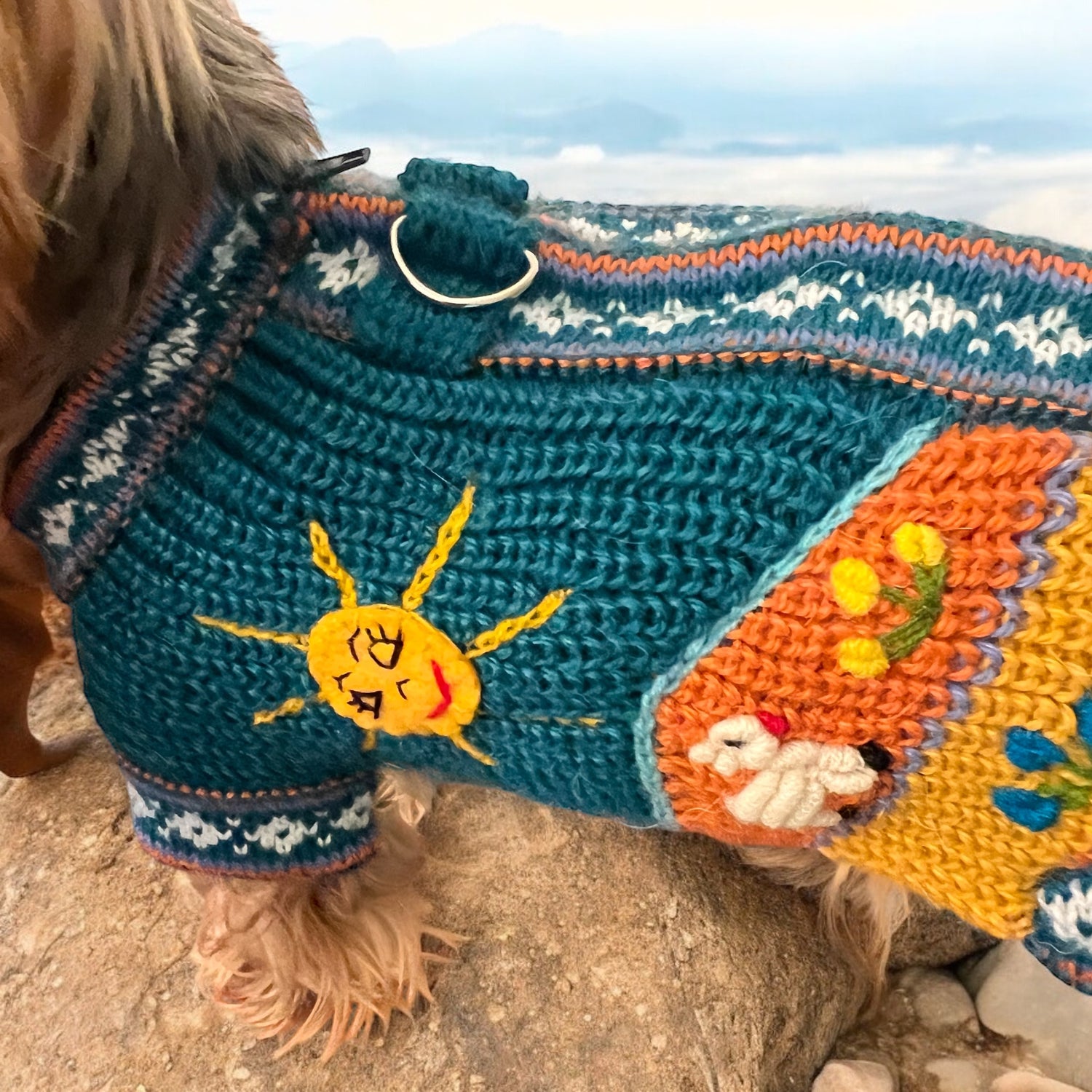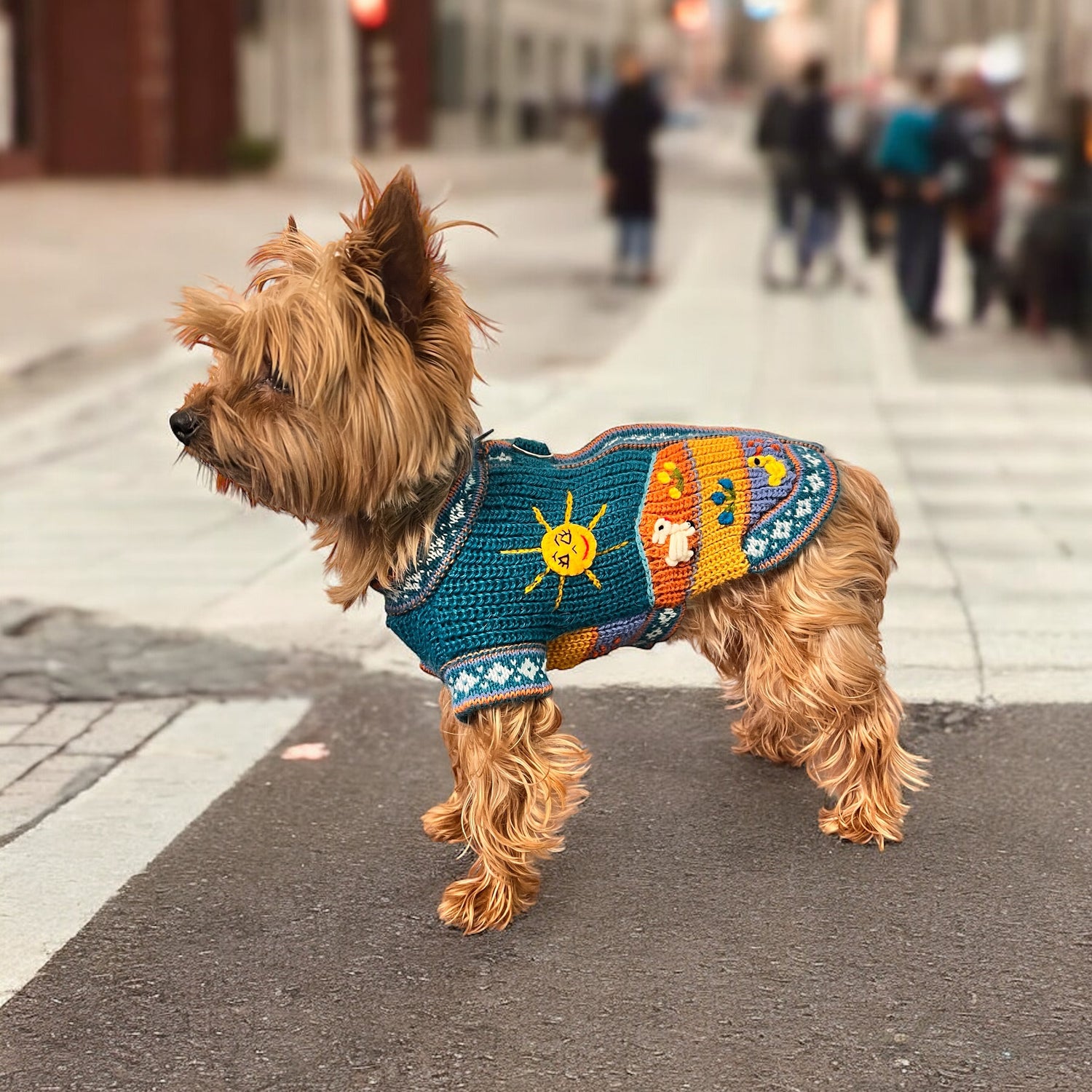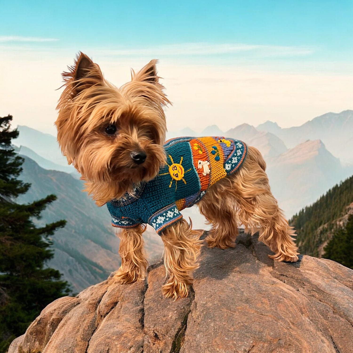 Doggies get cold too, especially the smaller breeds! Our Yorkie, Luna, adores her sweater and looks adorable in it. Each Peruvian Accent sweater is unique, with a machine-made base and hand-applied appliques, ensuring that every piece is one of a kind.