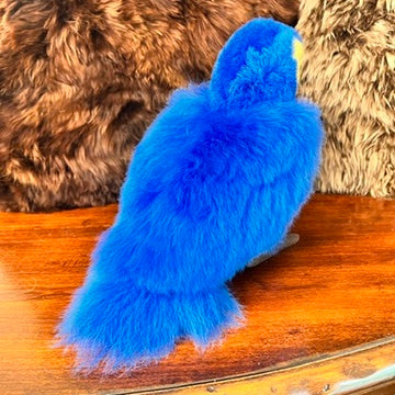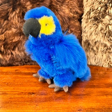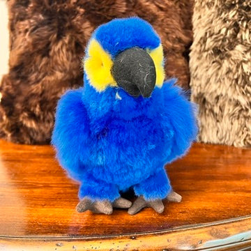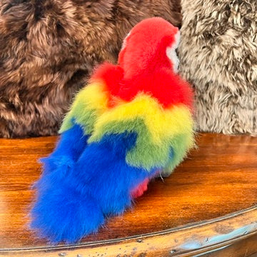 This handmade luxury Baby Alpaca fur Amazon parrot is a true work of art, crafted with the finest, naturally harvested Baby Alpaca fur. Incredibly soft and beautifully detailed, this parrot is designed to stand on its own, making it a striking decorative piece as well as a soothing companion.