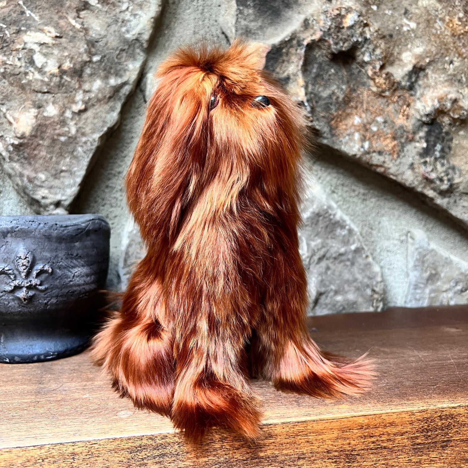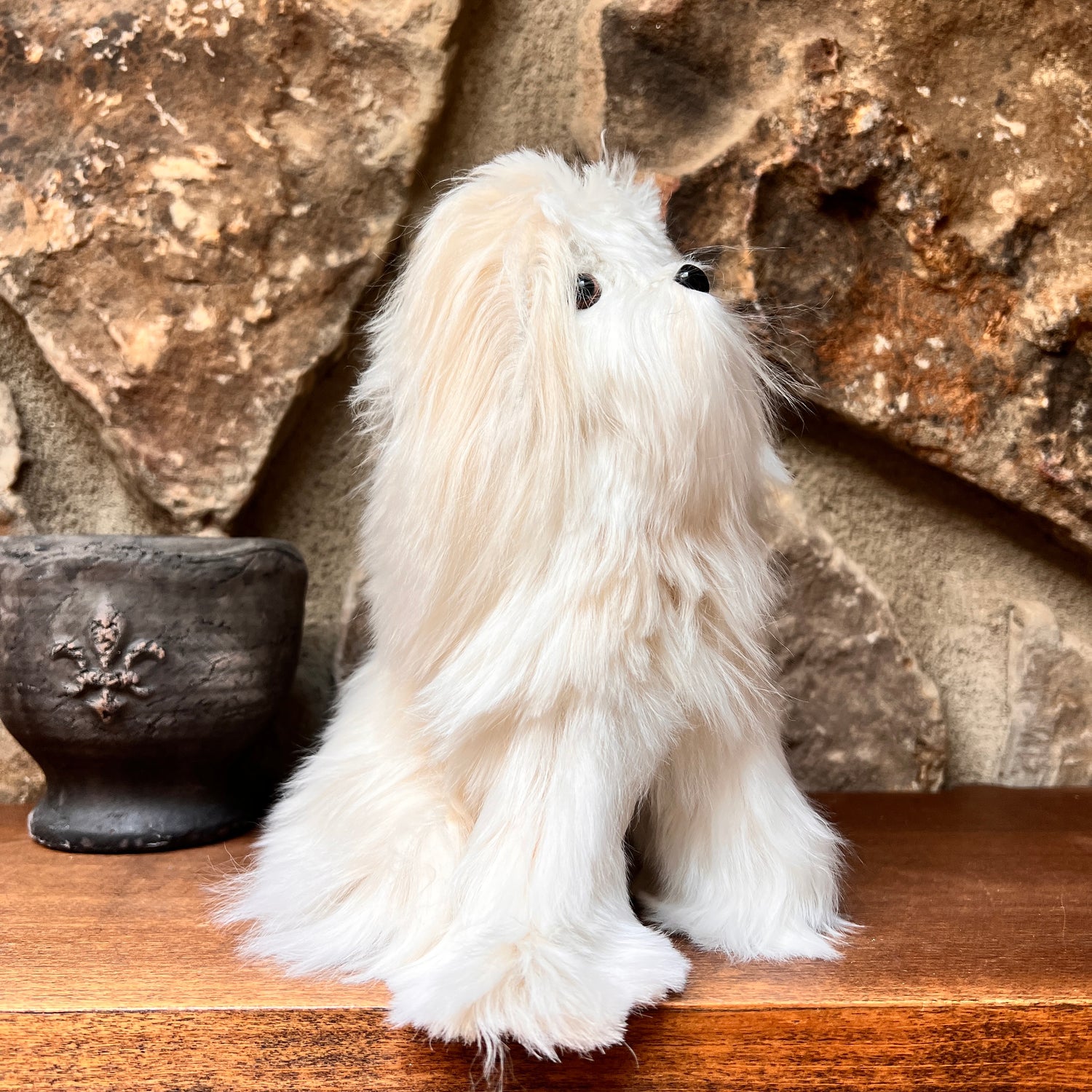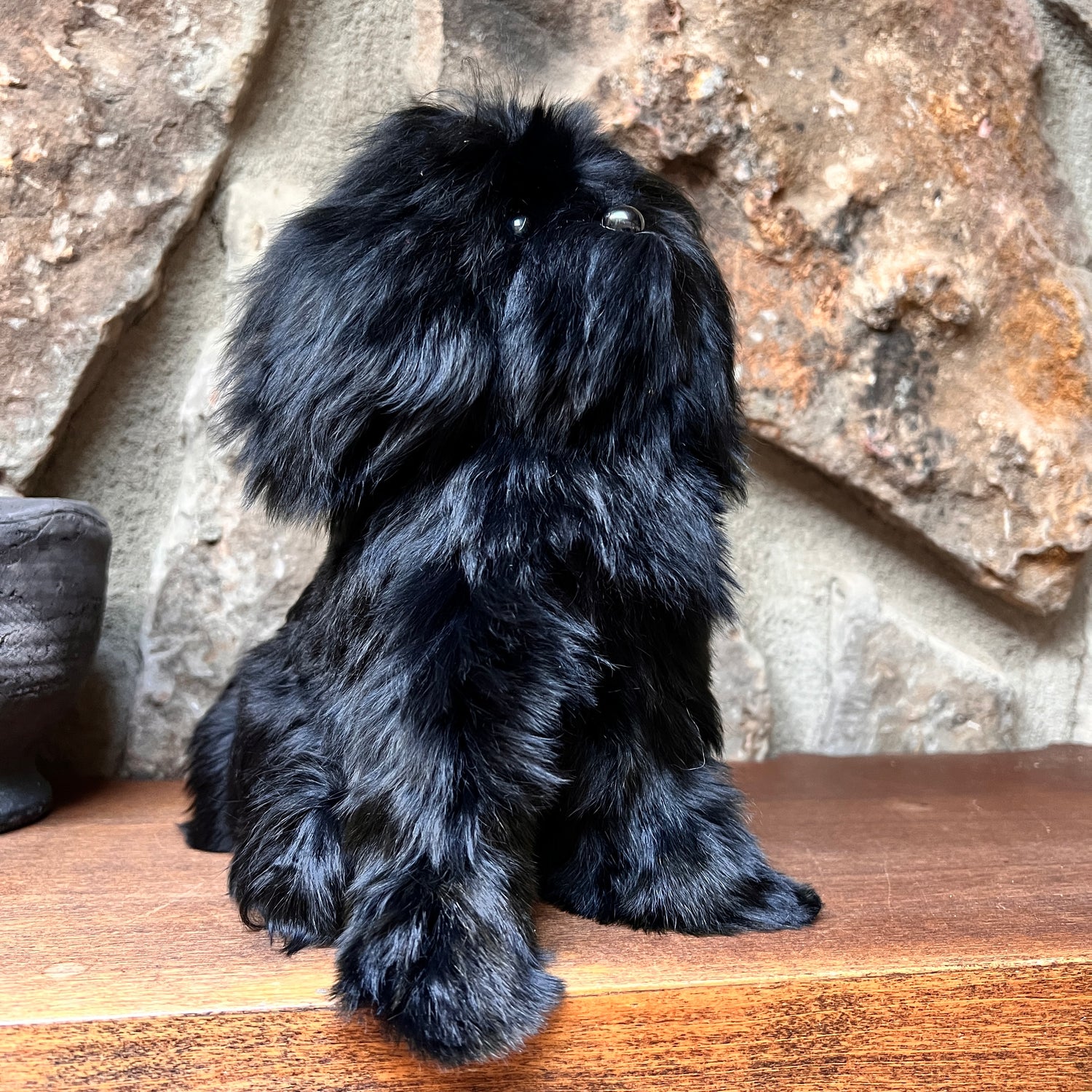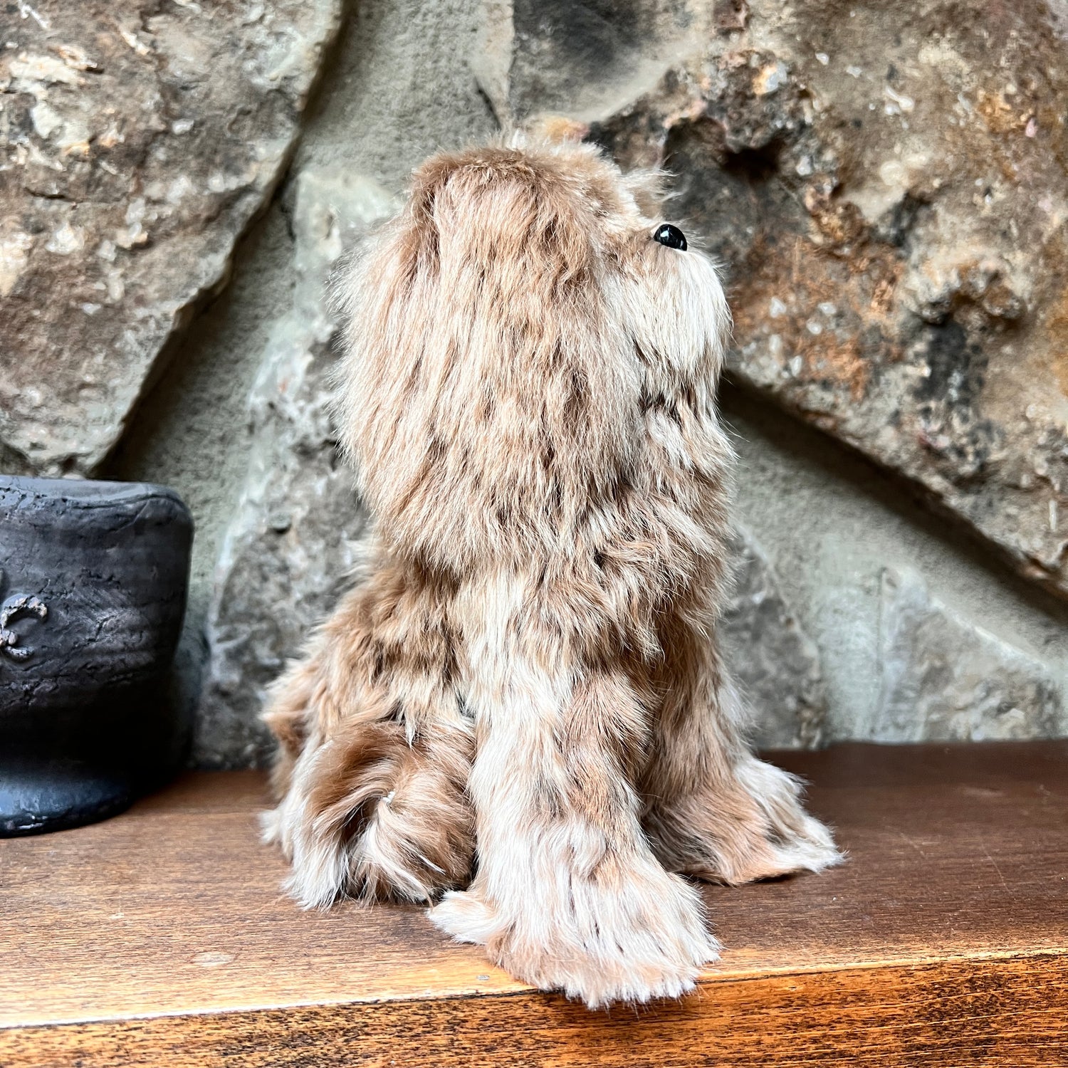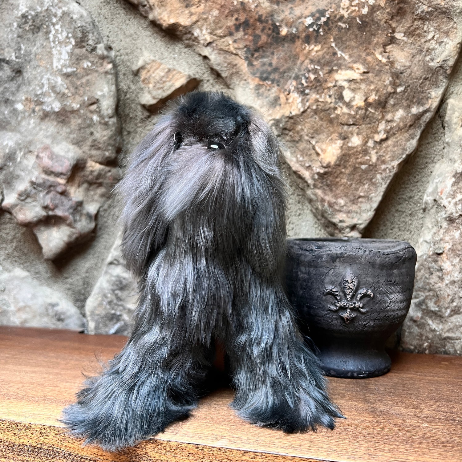 Handmade Luxury Baby Suri Alpaca Fur Dog – Medium Size. Measuring approximately 8 inches tall and 6 inches from toe to tail.