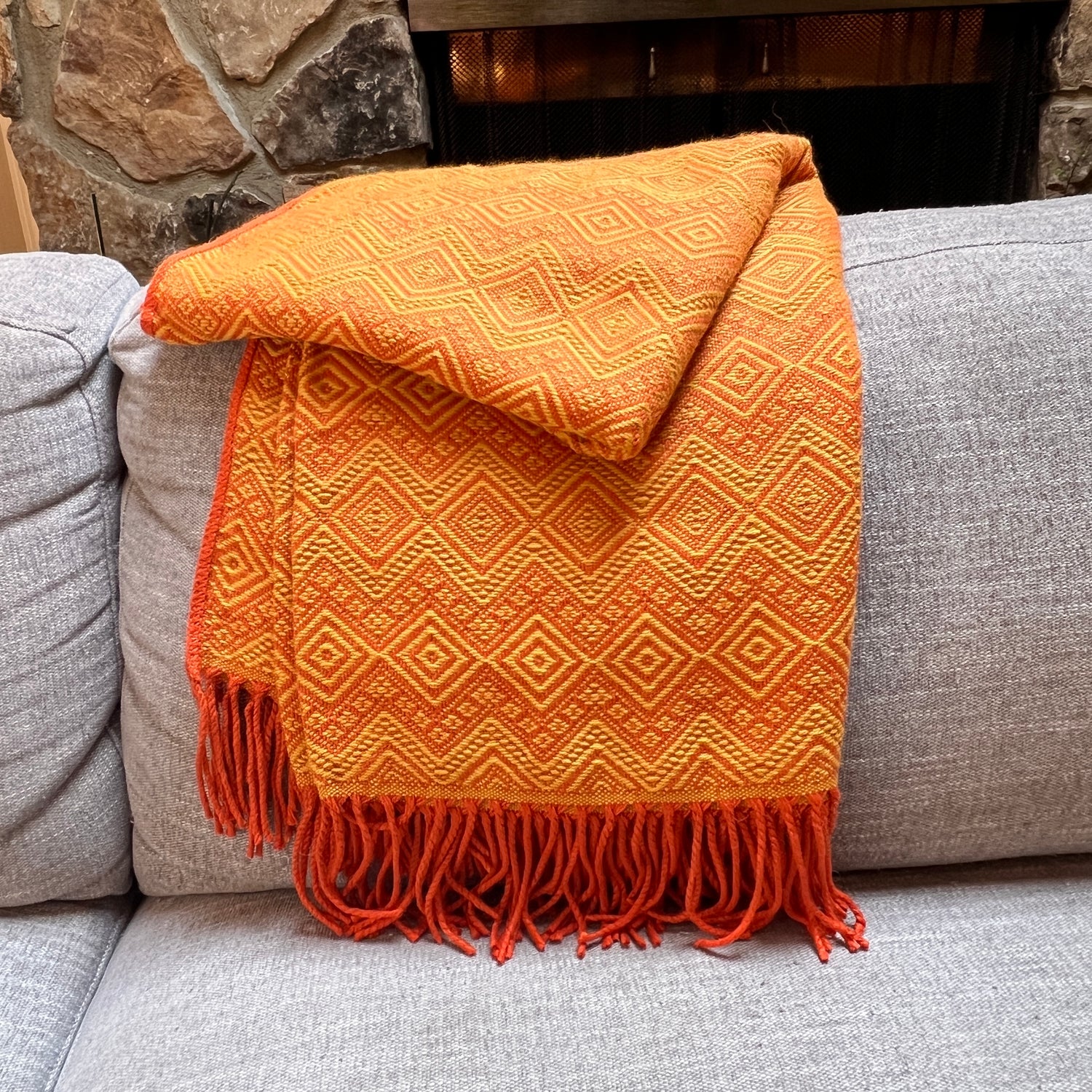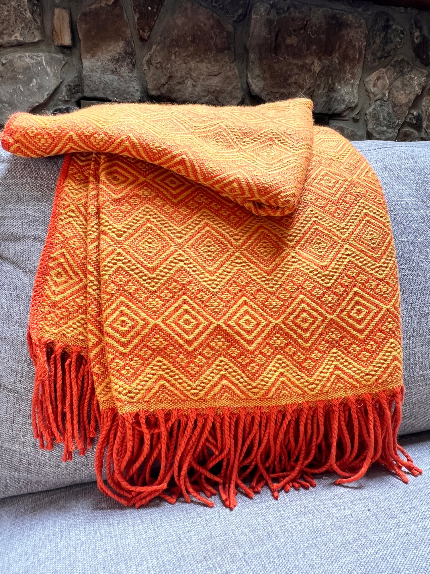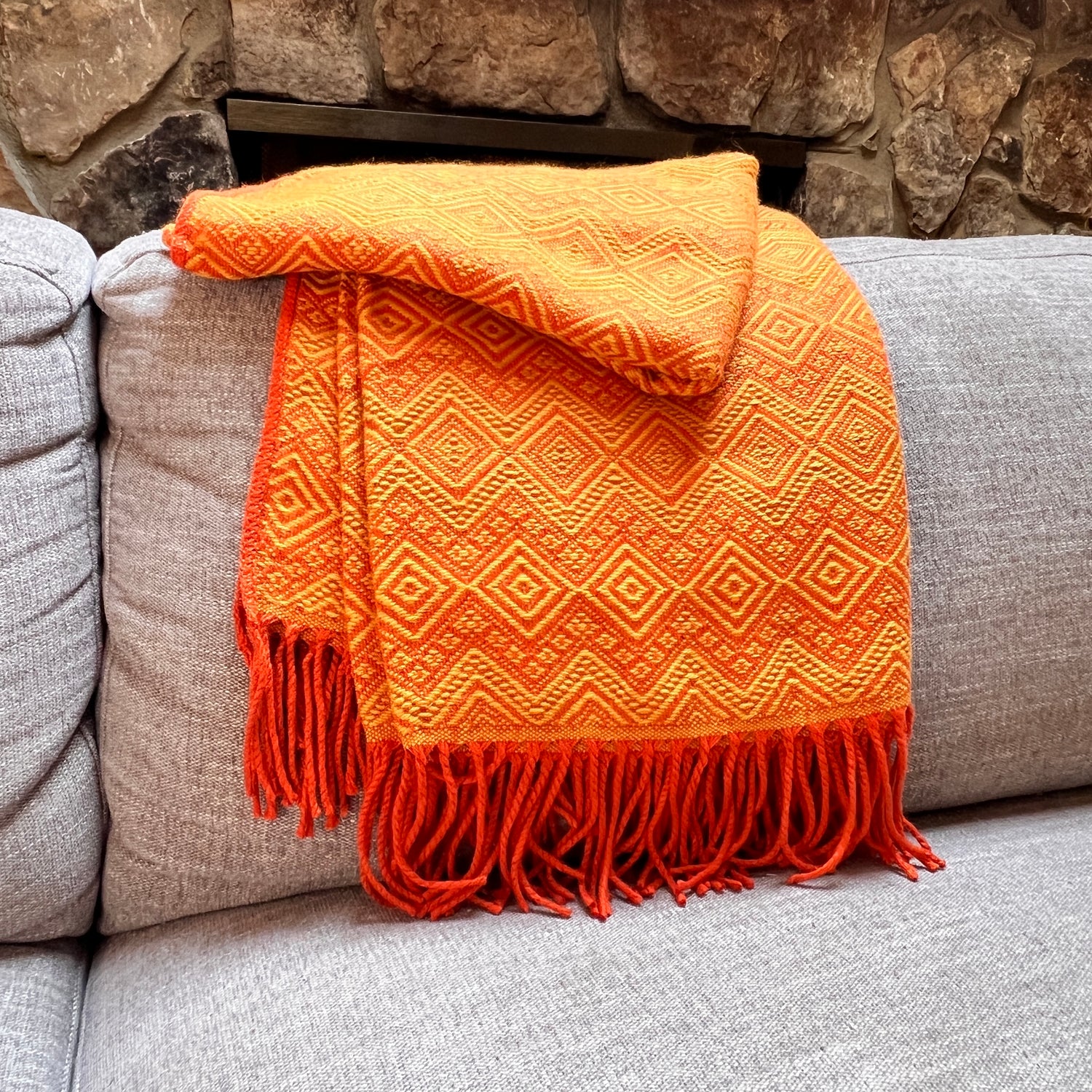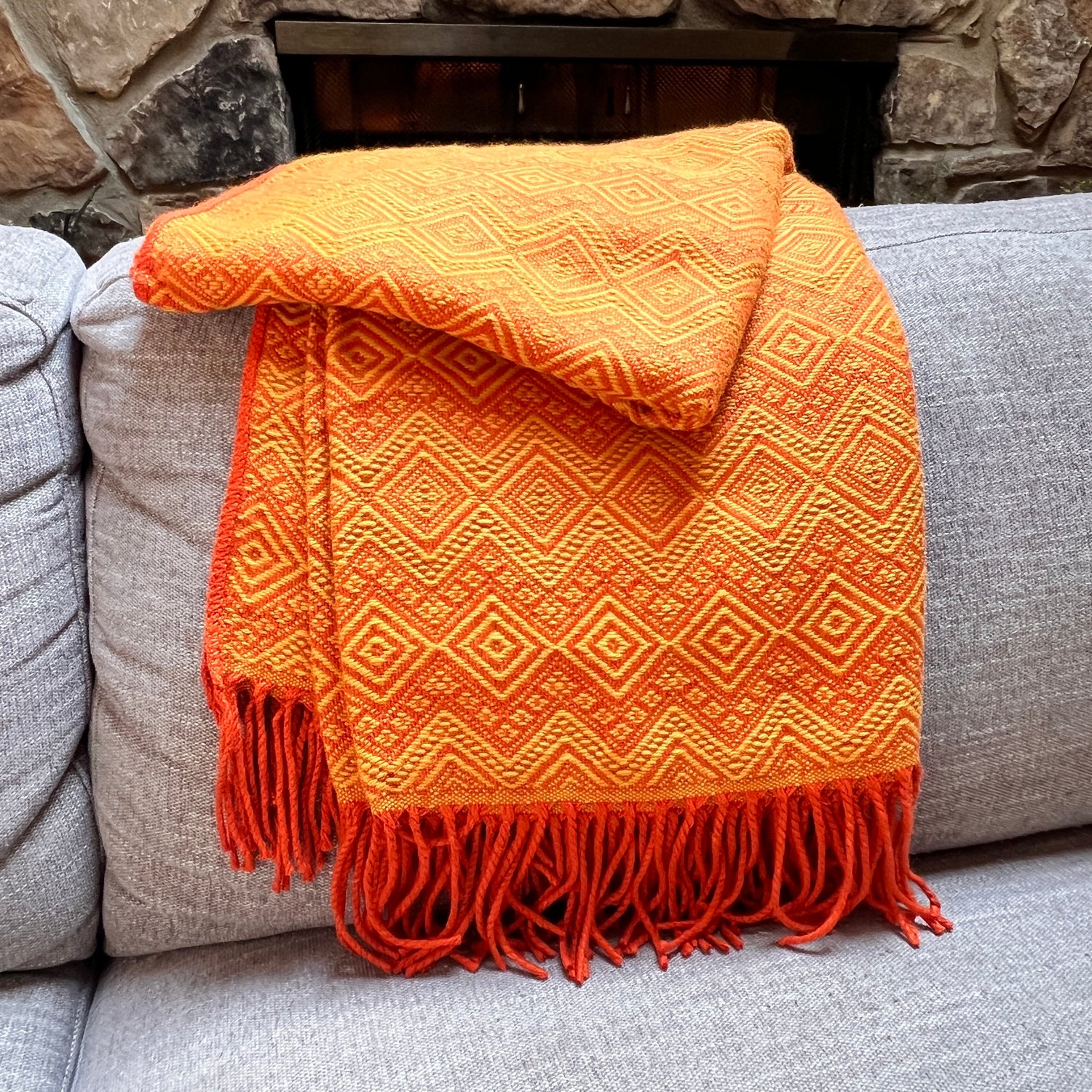 Andean Ember Alpaca Throw Blanket (Gold & Orange)