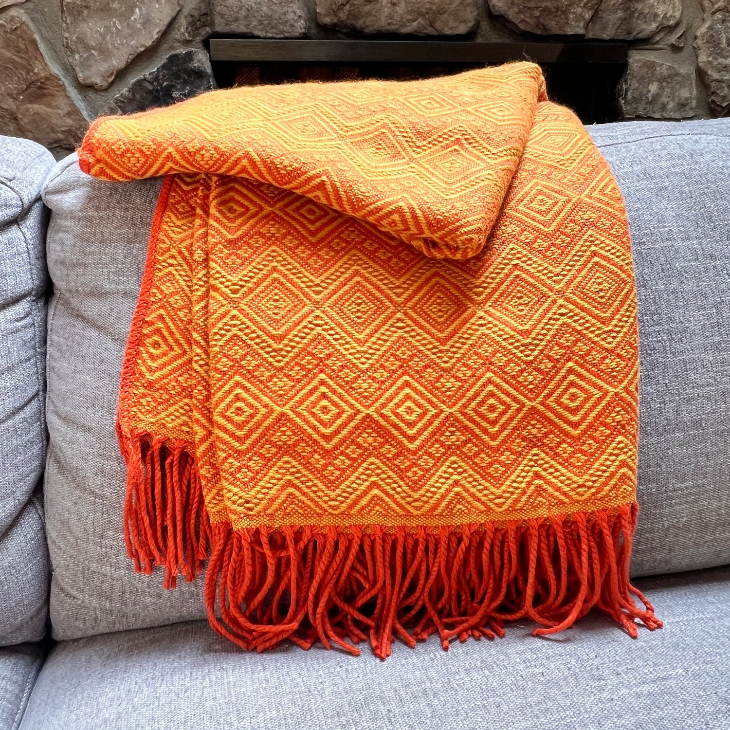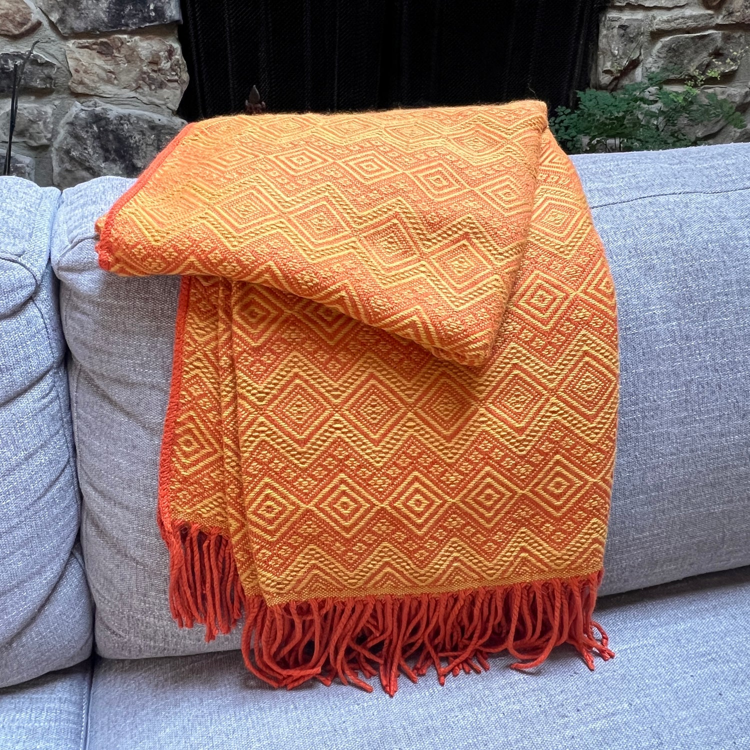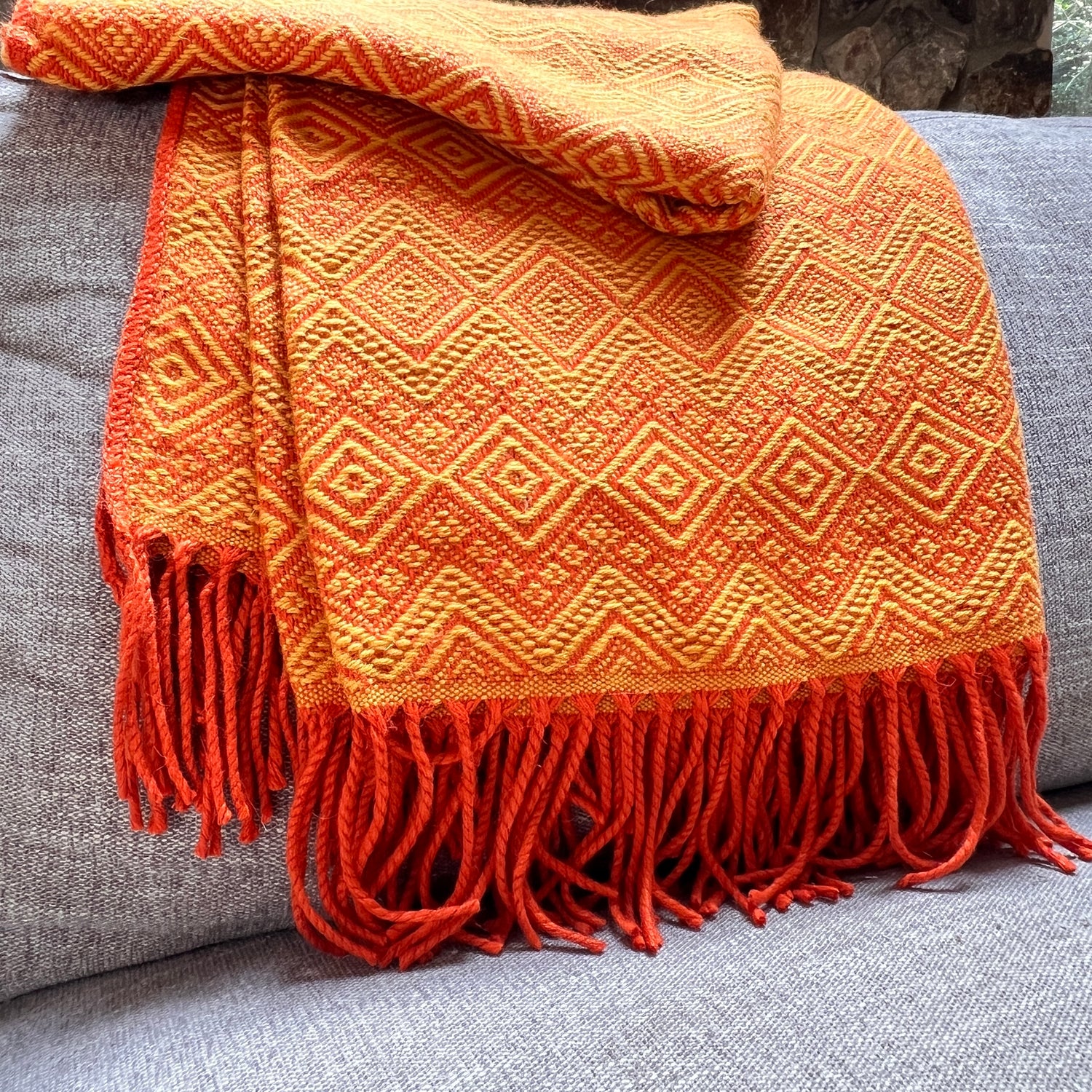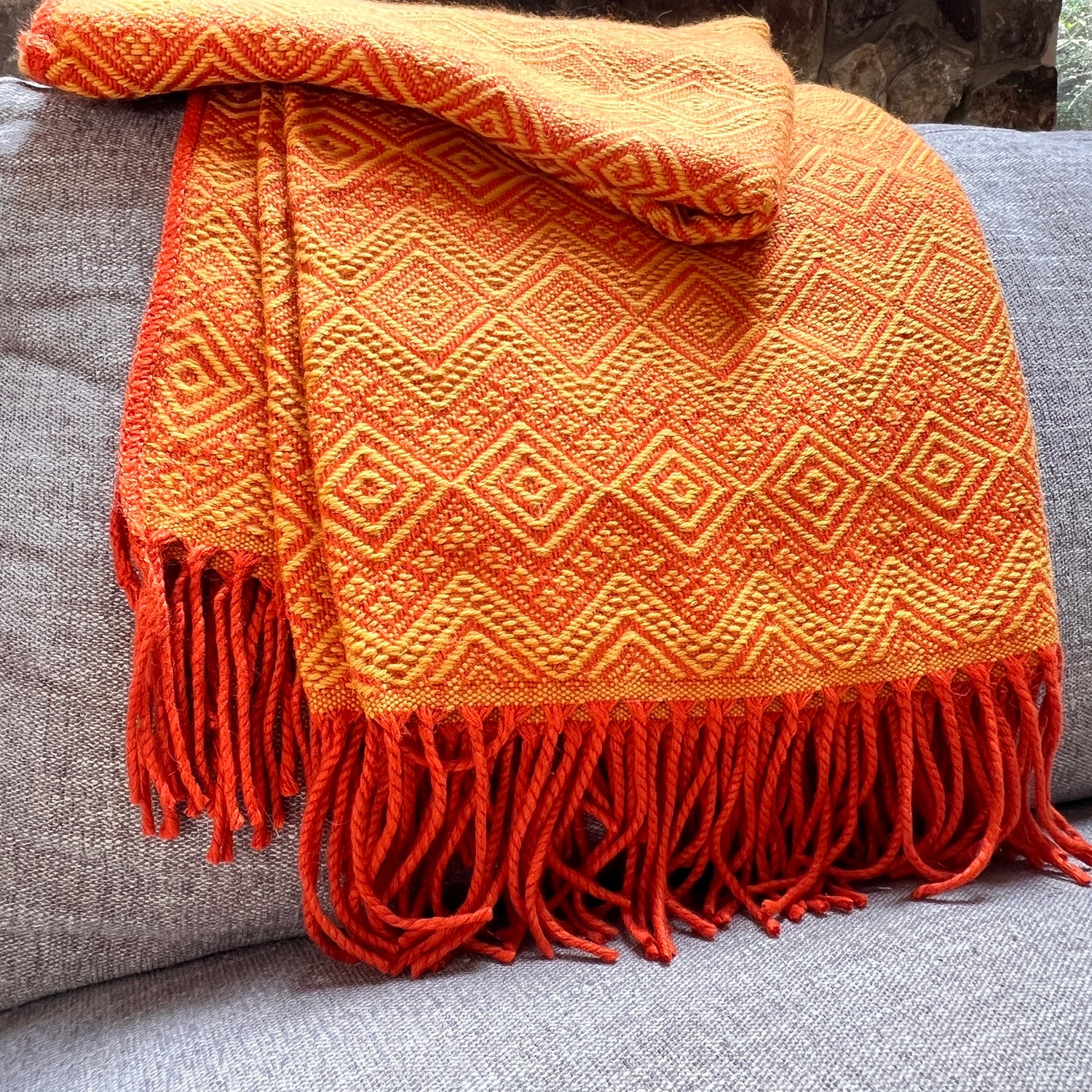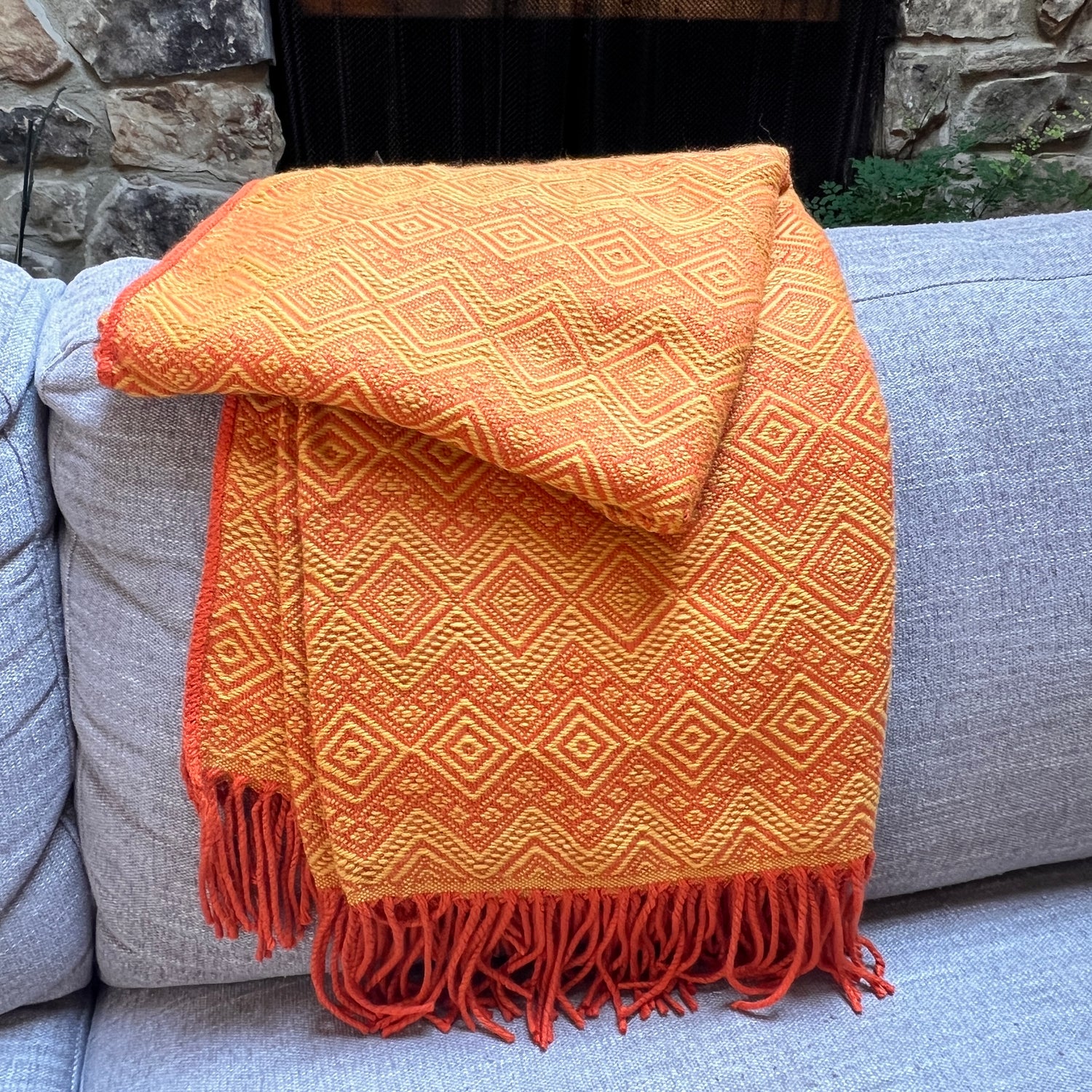 Andean Ember Alpaca Throw Blanket (Gold & Orange)